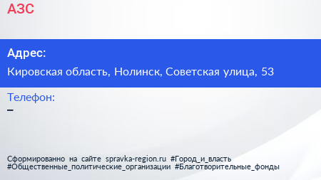 АЗС по адресу Кировская область, Нолинск, Советская улица, 53 в дальнейшем Организация, размещена в следующих категориях: