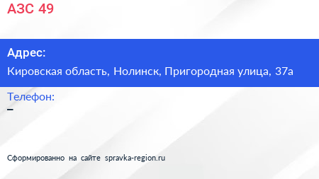 АЗС №49 по адресу Кировская область, Нолинск, Пригородная улица, 37а в дальнейшем Организация, размещена в следующих категориях: