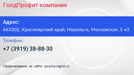 ГолдПрофит, компания по адресу 663302, Красноярский край, Норильск, Московская, 3 к3 в дальнейшем Организация, размещена в следующих категориях: