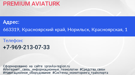 PREMIUM AVIATURK по адресу 663319, Красноярский край, Норильск, Красноярская, 1 в дальнейшем Организация, размещена в следующих категориях: