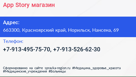 App.Story, магазин по адресу 663300, Красноярский край, Норильск, Нансена, 69 в дальнейшем Организация, размещена в следующих категориях:
