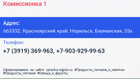 Комиссионка №1 по адресу 663332, Красноярский край, Норильск, Бауманская, 33а в дальнейшем Организация, размещена в следующих категориях: