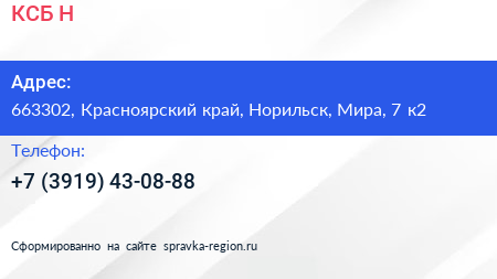 КСБ-Н по адресу 663302, Красноярский край, Норильск, Мира, 7 к2 в дальнейшем Организация, размещена в следующих категориях: