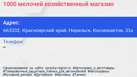 1000 мелочей, хозяйственный магазин по адресу 663332, Красноярский край, Норильск, Космонавтов, 31а в дальнейшем Организация, размещена в следующих категориях:
