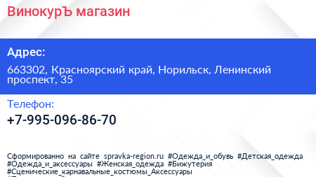 ВинокурЪ, магазин по адресу 663302, Красноярский край, Норильск, Ленинский проспект, 35 в дальнейшем Организация, размещена в следующих категориях: