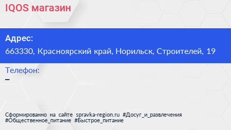 IQOS, магазин по адресу 663330, Красноярский край, Норильск, Строителей, 19 в дальнейшем Организация, размещена в следующих категориях: