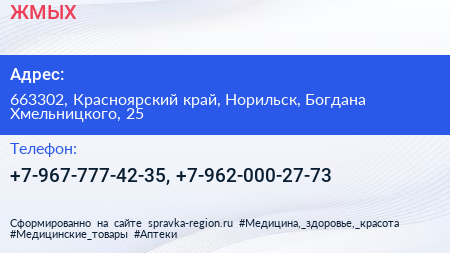 ЖМЫХ по адресу 663302, Красноярский край, Норильск, Богдана Хмельницкого, 25 в дальнейшем Организация, размещена в следующих категориях: