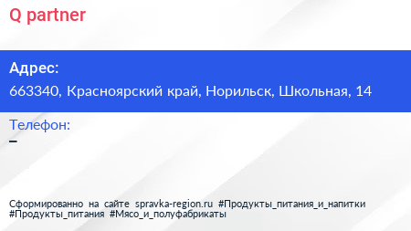 Q partner по адресу 663340, Красноярский край, Норильск, Школьная, 14 в дальнейшем Организация, размещена в следующих категориях: