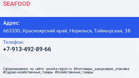 SEAFOOD по адресу 663330, Красноярский край, Норильск, Таймырская, 18 в дальнейшем Организация, размещена в следующих категориях:
