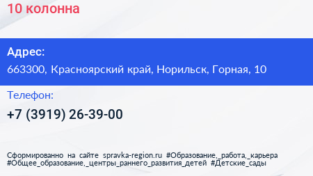 10 колонна по адресу 663300, Красноярский край, Норильск, Горная, 10 в дальнейшем Организация, размещена в следующих категориях: