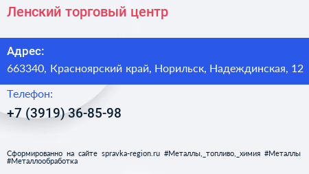 Ленский, торговый центр по адресу 663340, Красноярский край, Норильск, Надеждинская, 12 в дальнейшем Организация, размещена в следующих категориях: