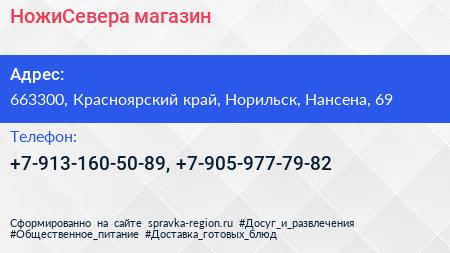 НожиСевера, магазин по адресу 663300, Красноярский край, Норильск, Нансена, 69 в дальнейшем Организация, размещена в следующих категориях: