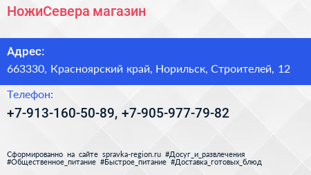 НожиСевера, магазин по адресу 663330, Красноярский край, Норильск, Строителей, 12 в дальнейшем Организация, размещена в следующих категориях:
