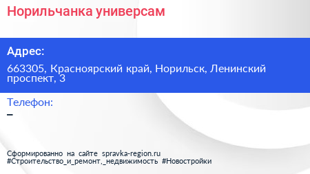 Норильчанка, универсам по адресу 663305, Красноярский край, Норильск, Ленинский проспект, 3 в дальнейшем Организация, размещена в следующих категориях: