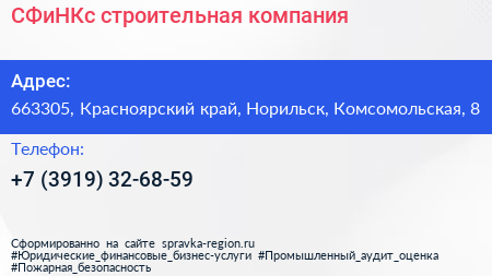 СФиНКс, строительная компания по адресу 663305, Красноярский край, Норильск, Комсомольская, 8 в дальнейшем Организация, размещена в следующих категориях:
