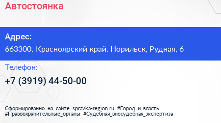 Автостоянка по адресу 663300, Красноярский край, Норильск, Рудная, 6 в дальнейшем Организация, размещена в следующих категориях: