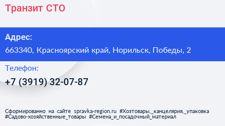Транзит, СТО по адресу 663340, Красноярский край, Норильск, Победы, 2 в дальнейшем Организация, размещена в следующих категориях: