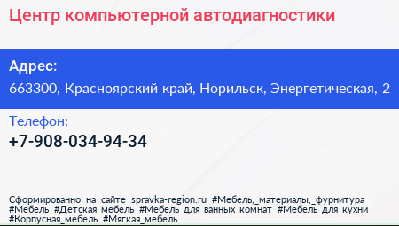 Центр компьютерной автодиагностики по адресу 663300, Красноярский край, Норильск, Энергетическая, 2 в дальнейшем Организация, размещена в следующих категориях: