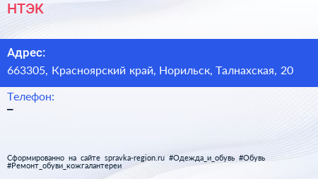 НТЭК по адресу 663305, Красноярский край, Норильск, Талнахская, 20 в дальнейшем Организация, размещена в следующих категориях: