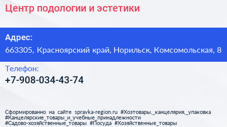 Центр подологии и эстетики по адресу 663305, Красноярский край, Норильск, Комсомольская, 8 в дальнейшем Организация, размещена в следующих категориях: