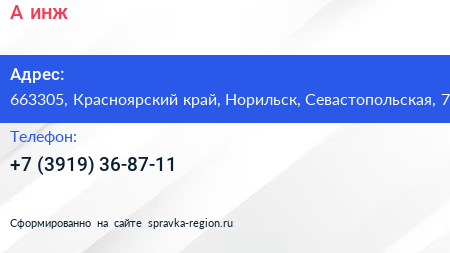 А-инж по адресу 663305, Красноярский край, Норильск, Севастопольская, 7 в дальнейшем Организация, размещена в следующих категориях: