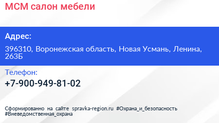 МСМ, салон мебели по адресу 396310, Воронежская область, Новая Усмань, Ленина, 263Б в дальнейшем Организация, размещена в следующих категориях: