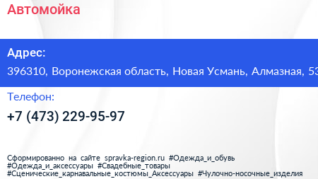 Автомойка по адресу 396310, Воронежская область, Новая Усмань, Алмазная, 53 в дальнейшем Организация, размещена в следующих категориях: