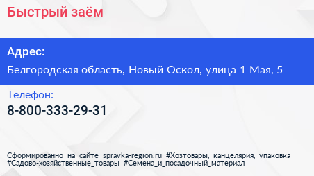 Быстрый заём по адресу Белгородская область, Новый Оскол, улица 1 Мая, 5 в дальнейшем Организация, размещена в следующих категориях:
