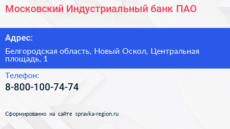 Московский Индустриальный банк, ПАО по адресу Белгородская область, Новый Оскол, Центральная площадь, 1 в дальнейшем Организация, размещена в следующих категориях: