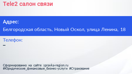 Tele2, салон связи по адресу Белгородская область, Новый Оскол, улица Ленина, 18 в дальнейшем Организация, размещена в следующих категориях: