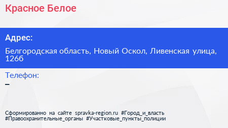 Красное & Белое по адресу Белгородская область, Новый Оскол, Ливенская улица, 126б в дальнейшем Организация, размещена в следующих категориях: