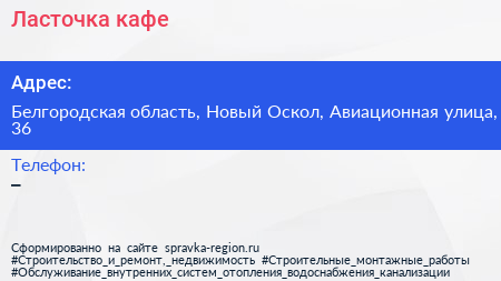 Ласточка, кафе по адресу Белгородская область, Новый Оскол, Авиационная улица, 36 в дальнейшем Организация, размещена в следующих категориях: