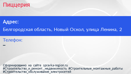 Пиццерия по адресу Белгородская область, Новый Оскол, улица Ленина, 2 в дальнейшем Организация, размещена в следующих категориях: