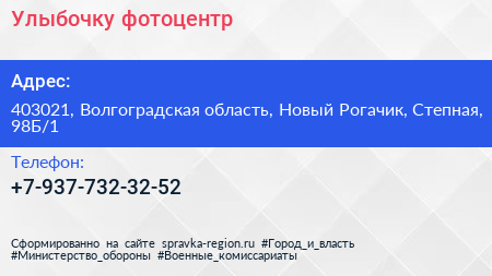 Улыбочку, фотоцентр по адресу 403021, Волгоградская область, Новый Рогачик, Степная, 98Б/1 в дальнейшем Организация, размещена в следующих категориях:
