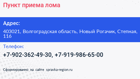 Пункт приема лома по адресу 403021, Волгоградская область, Новый Рогачик, Степная, 116 в дальнейшем Организация, размещена в следующих категориях: