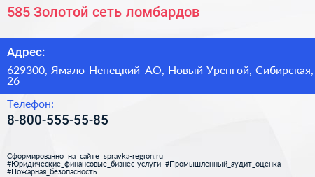 585*Золотой, сеть ломбардов по адресу 629300, Ямало-Ненецкий АО, Новый Уренгой, Сибирская, 26 в дальнейшем Организация, размещена в следующих категориях: