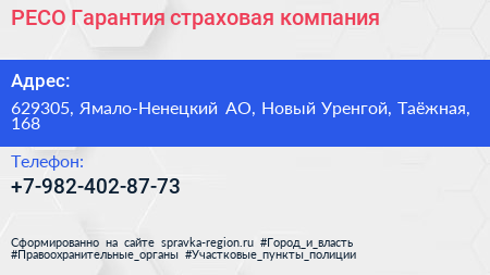 РЕСО-Гарантия, страховая компания по адресу 629305, Ямало-Ненецкий АО, Новый Уренгой, Таёжная, 168 в дальнейшем Организация, размещена в следующих категориях: