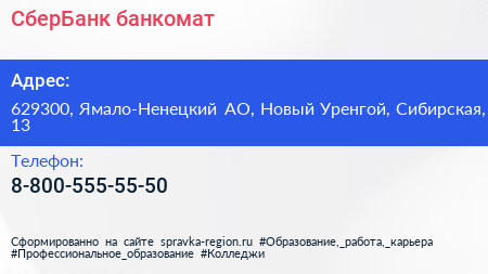 СберБанк, банкомат по адресу 629300, Ямало-Ненецкий АО, Новый Уренгой, Сибирская, 13 в дальнейшем Организация, размещена в следующих категориях: