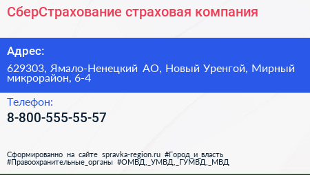 СберСтрахование, страховая компания по адресу 629303, Ямало-Ненецкий АО, Новый Уренгой, Мирный микрорайон, 6-4 в дальнейшем Организация, размещена в следующих категориях: