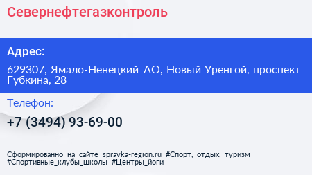 Севернефтегазконтроль по адресу 629307, Ямало-Ненецкий АО, Новый Уренгой, проспект Губкина, 28 в дальнейшем Организация, размещена в следующих категориях: