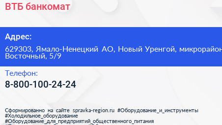 ВТБ, банкомат по адресу 629303, Ямало-Ненецкий АО, Новый Уренгой, микрорайон Восточный, 5/9 в дальнейшем Организация, размещена в следующих категориях: