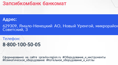 Запсибкомбанк, банкомат по адресу 629309, Ямало-Ненецкий АО, Новый Уренгой, микрорайон Советский, 3 в дальнейшем Организация, размещена в следующих категориях: