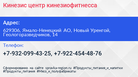 Кинезис, центр кинезиофитнесса по адресу 629306, Ямало-Ненецкий АО, Новый Уренгой, Геологоразведчиков, 14 в дальнейшем Организация, размещена в следующих категориях: