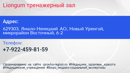Liongum, тренажерный зал по адресу 629303, Ямало-Ненецкий АО, Новый Уренгой, микрорайон Восточный, 6-2 в дальнейшем Организация, размещена в следующих категориях:
