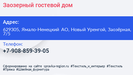Заозерный, гостевой дом по адресу 629305, Ямало-Ненецкий АО, Новый Уренгой, Заозёрная, 7/5 в дальнейшем Организация, размещена в следующих категориях: