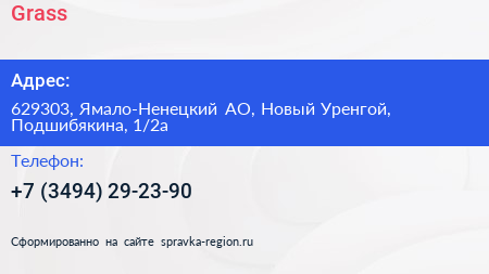 Grass по адресу 629303, Ямало-Ненецкий АО, Новый Уренгой, Подшибякина, 1/2а в дальнейшем Организация, размещена в следующих категориях: