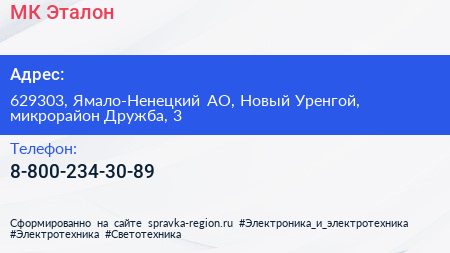 МК-Эталон по адресу 629303, Ямало-Ненецкий АО, Новый Уренгой, микрорайон Дружба, 3 в дальнейшем Организация, размещена в следующих категориях: