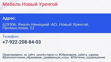 Мебель Новый Уренгой по адресу 629306, Ямало-Ненецкий АО, Новый Уренгой, Промысловая, 12 в дальнейшем Организация, размещена в следующих категориях: