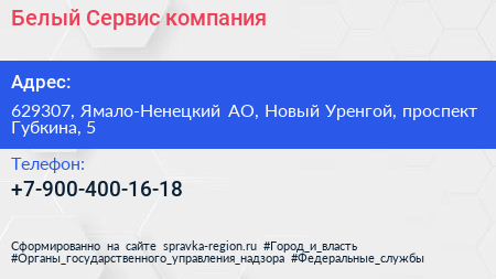 Белый Сервис, компания по адресу 629307, Ямало-Ненецкий АО, Новый Уренгой, проспект Губкина, 5 в дальнейшем Организация, размещена в следующих категориях: