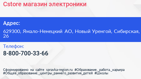 Cstore, магазин электроники по адресу 629300, Ямало-Ненецкий АО, Новый Уренгой, Сибирская, 26 в дальнейшем Организация, размещена в следующих категориях: